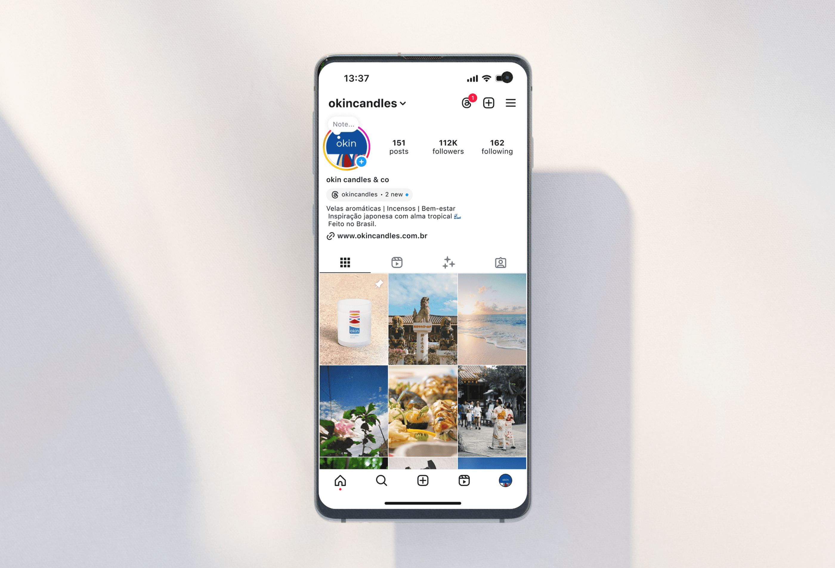 Okin Candles & Co. é uma marca de velas aromáticas inspirada na filosofia de bem-estar e longevidade do povo de Okinawa. O projeto foi desenvolvido com o objetivo de criar uma identidade visual acolhedora e acessível, capaz de traduzir a proposta de autocuidado e a criação de ambientes de conforto.